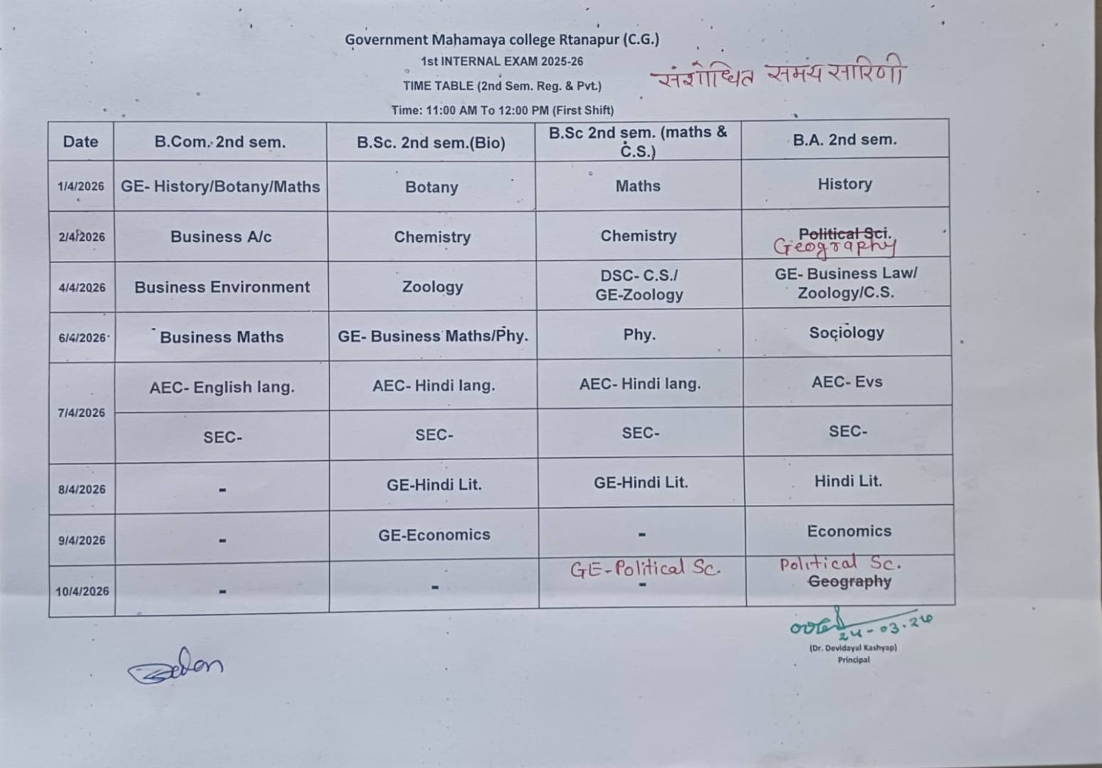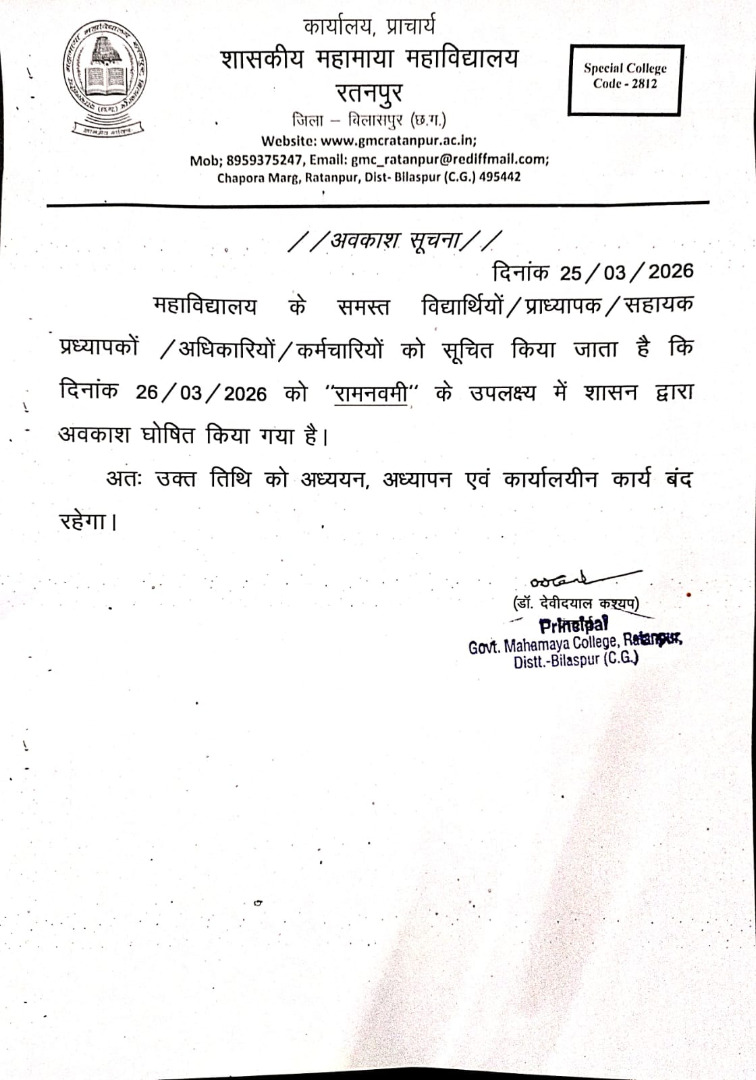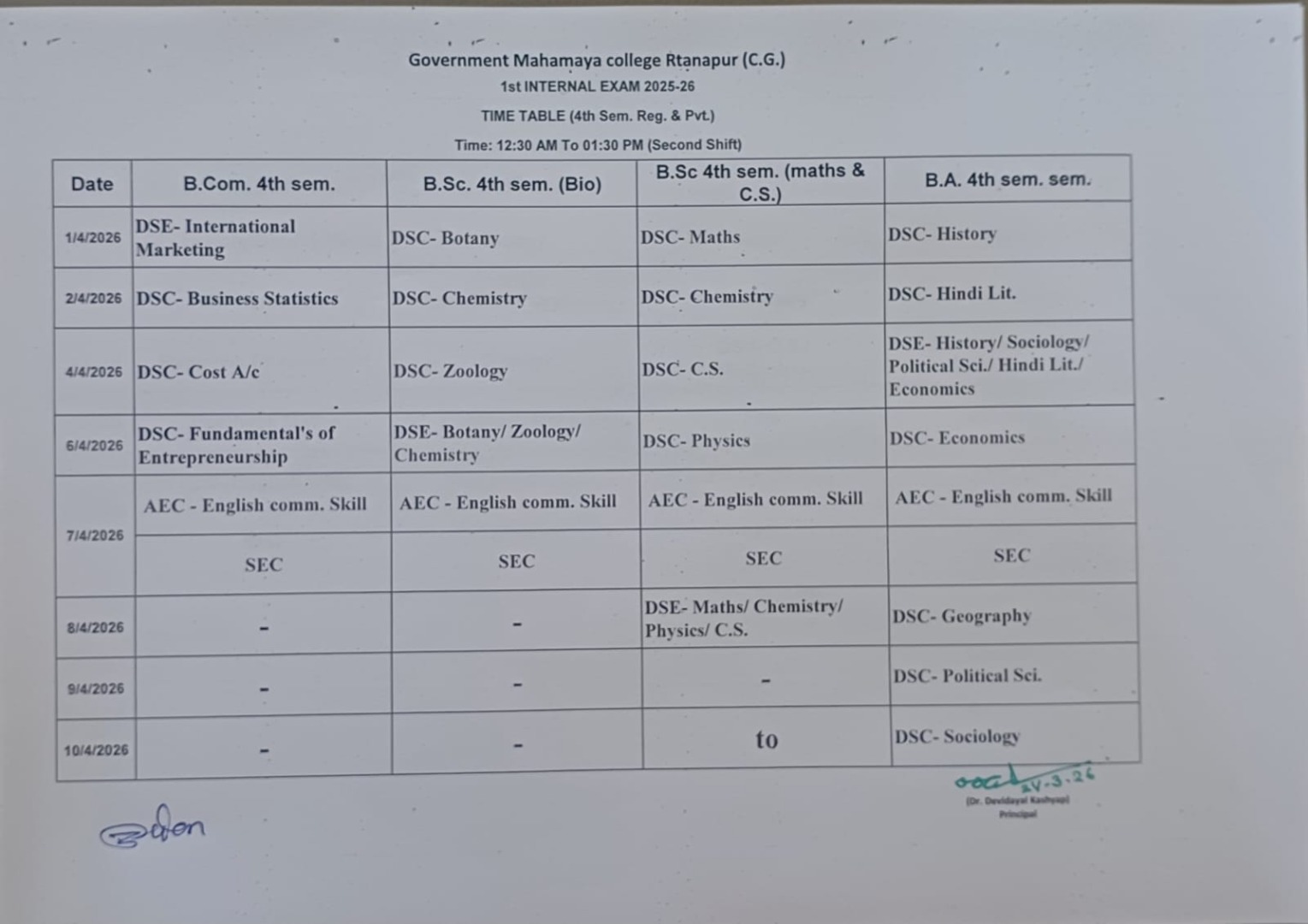 26-Mar-2026 Notices & Letters चतुर्थ सेमेस्टर प्रथम आंतरिक मूल्यांकन परीक्षा 2025 -26