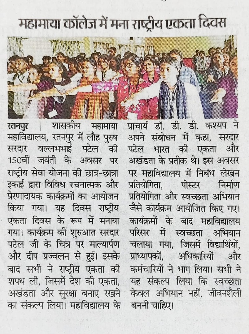 01-Nov-2025 College in Media राष्ट्रीय एकता दिवस पर विविध आयोजन