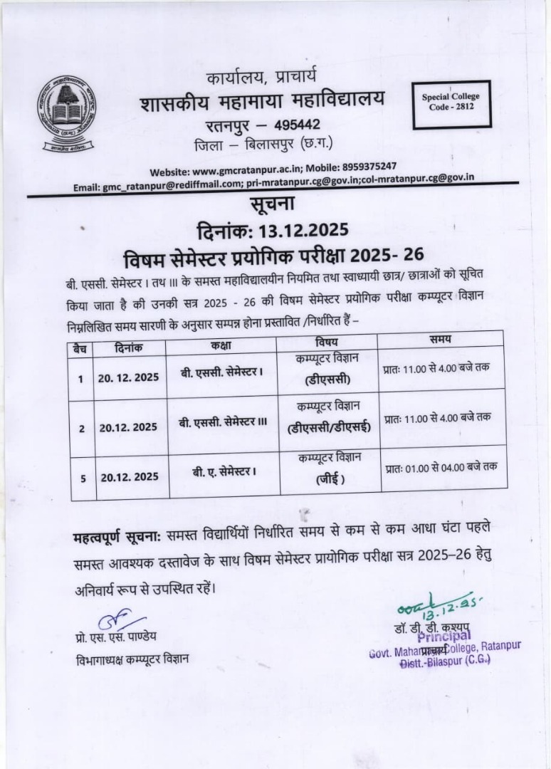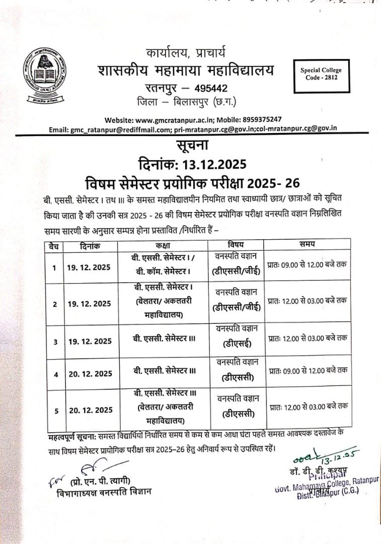 12-Dec-2025 भौतिक विज्ञान विषम सेमेस्टर प्रायोगिक परीक्षा सत्र 2025 - 26